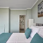 - ❓Czy w tym apartamencie znajduje się kuchnia do użytku gości?Tak, apartament wyposażony jest w pełnowymiarową kuchnię i oferuje czajnik elektryczny, lodówkę i piekarnik.
